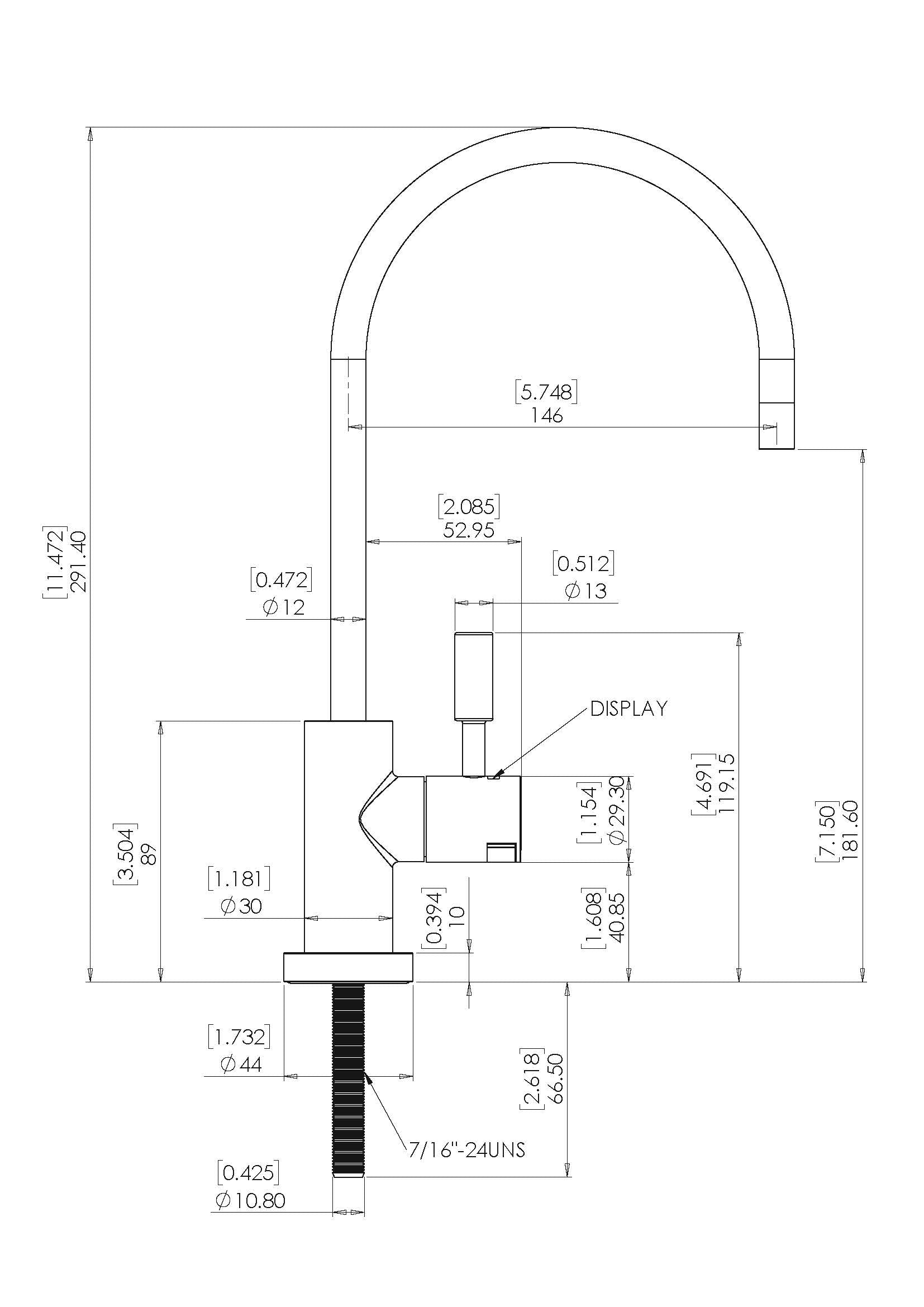 | Connection | Connect to 1/4" (6mm) nylon tube via an olive, insert and compression nut (supplied with faucet) |