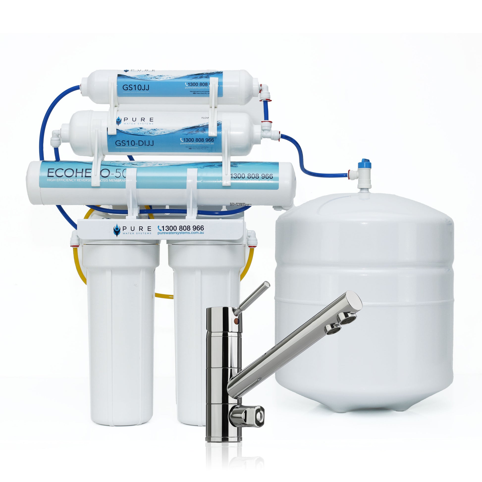 * Based on an inlet TDS of 100ppm. Internally tested using Pure Water Systems 5 stage reverse osmosis systems.