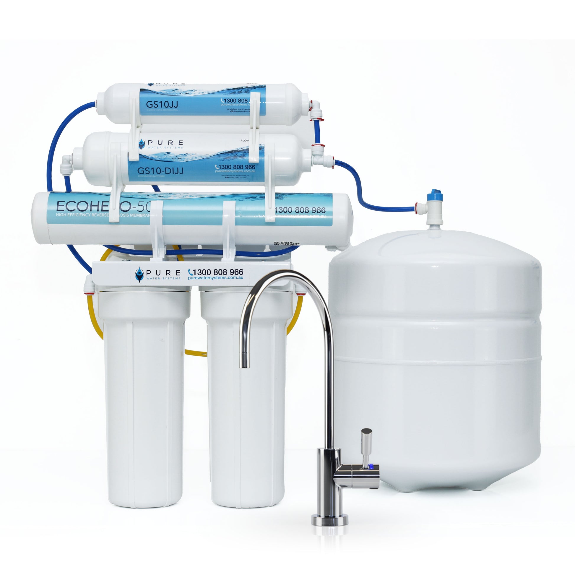 * Based on an inlet TDS of 100ppm. Internally tested using Pure Water Systems 5 stage reverse osmosis systems.