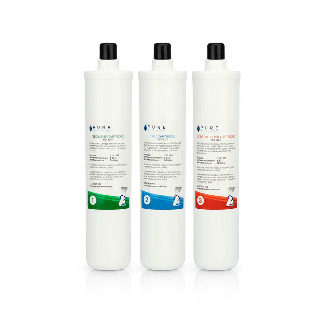 Order this bundle as a pocket friendly alternative to ordering replacement cartridges individually. The RO-5U system will alert you when it is time to replace these filter cartridges (usually every 6 months although this can vary depending on usage and water quality).