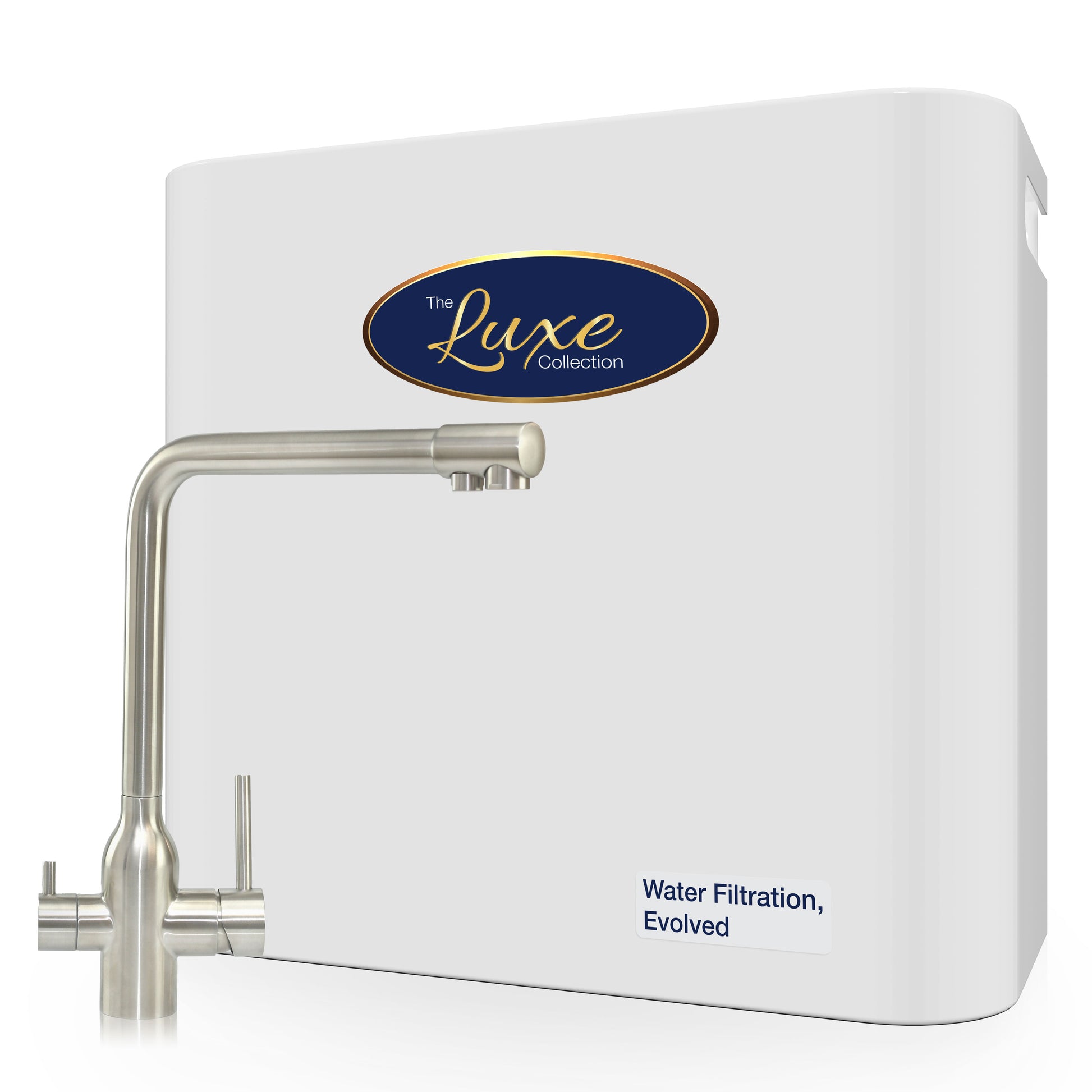 The Luxe Collection systems can be neatly plumbed under your sink or neatly on a bench top and secured against a wall for convenience. The system also includes your choice of aย 3 way mixer tap for great tasting, fresh filtered water on demand. Explore additional information about our taps and faucets here.