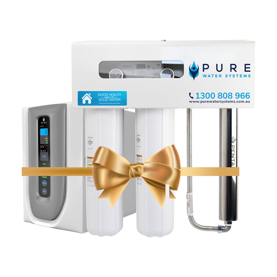 Spoil yourself or someone you love this Christmas with our Oasis Bundle. This bundle includes our RO-5U Reverse Osmosis Under Sink System and your choice of a Twin Whole House System or the Twin UV Whole House System.
