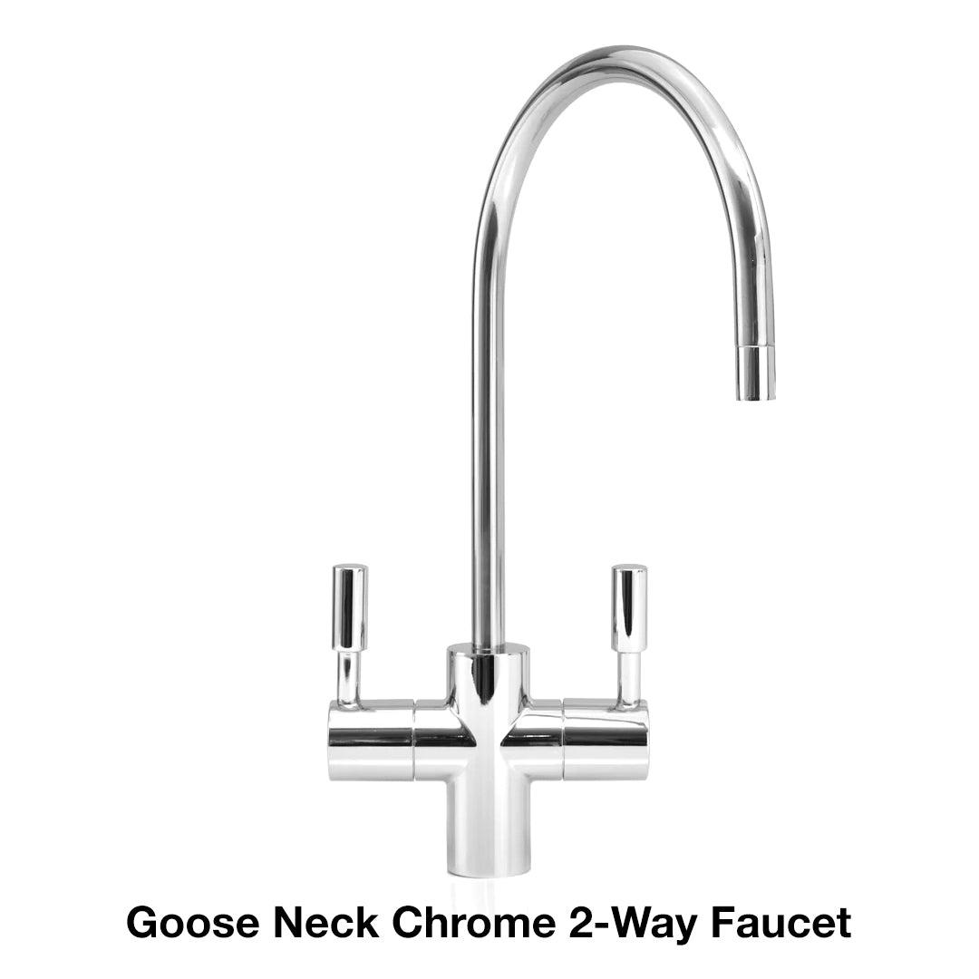 The Pure Water Systems Under Sink Chiller can come with an optional 2-way faucet, choose from the Standard Chrome 2-Way Faucet (Chilled and Ambient) or the Goose Neck Chrome 2-Way Faucet (Chilled and Ambient/heated) to conveniently connect to an under sink filter system, delivering both chilled and room temperature filtered water on demand.